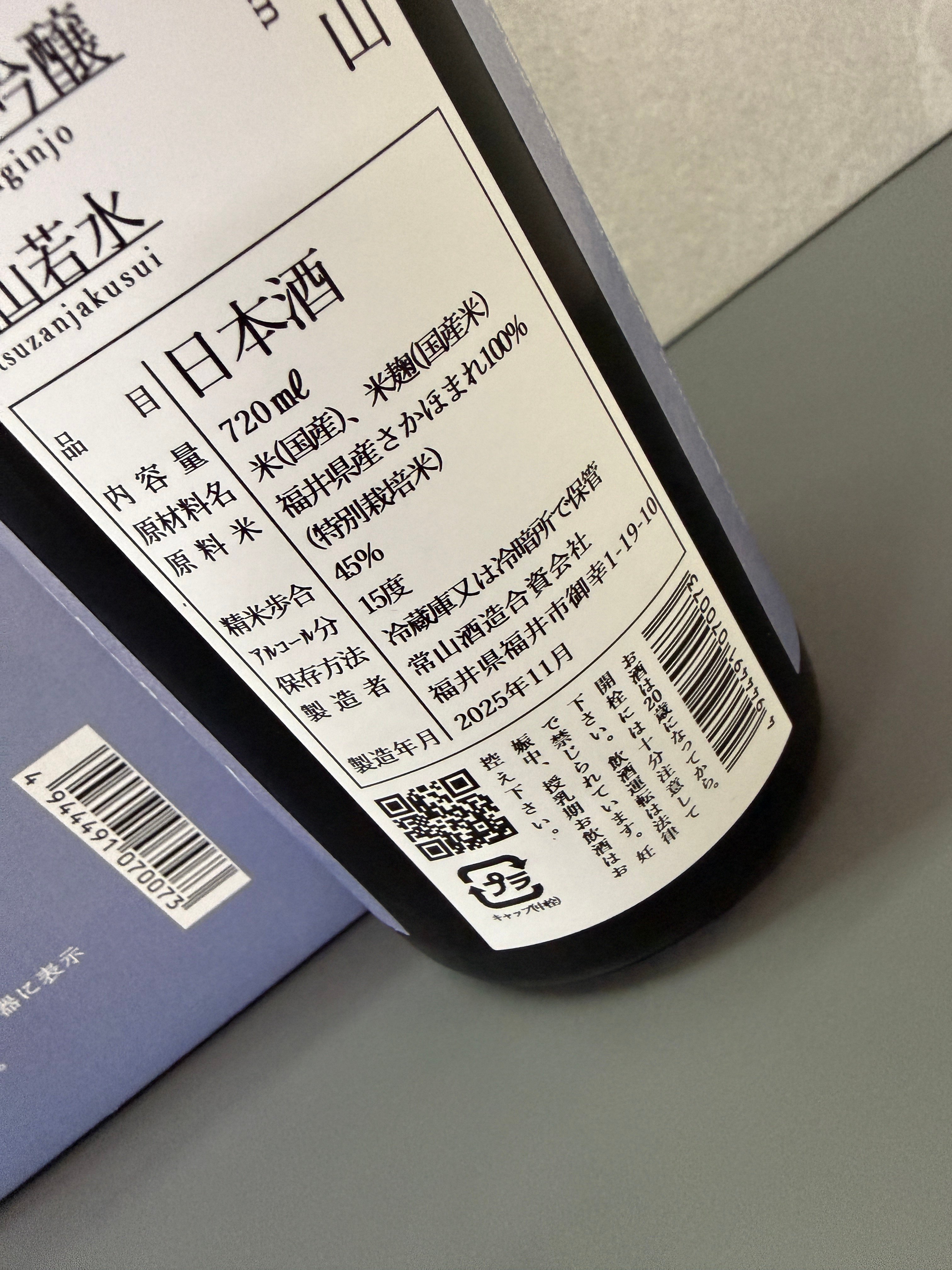 福井縣自古又稱為「越山若水」,意指越前青翠巍峨的山巒與若狹清澈甘甜的水源。這片土地不僅擁有得天獨厚的自然環境,亦因其豐富的物產被譽為「御食國」,長久以來為朝廷獻上優質食材。以此為靈感,常山酒造致力於將福井的自然風貌揉合於酒釀之中,推出了以福井縣原生酒米「さかほまれ」全量釀造的純米大吟釀,一款透過酒體展現海浪般柔和銳利、辛口爽朗,卻又蘊含山嶽般厚實米香與豐盈口感的作品。