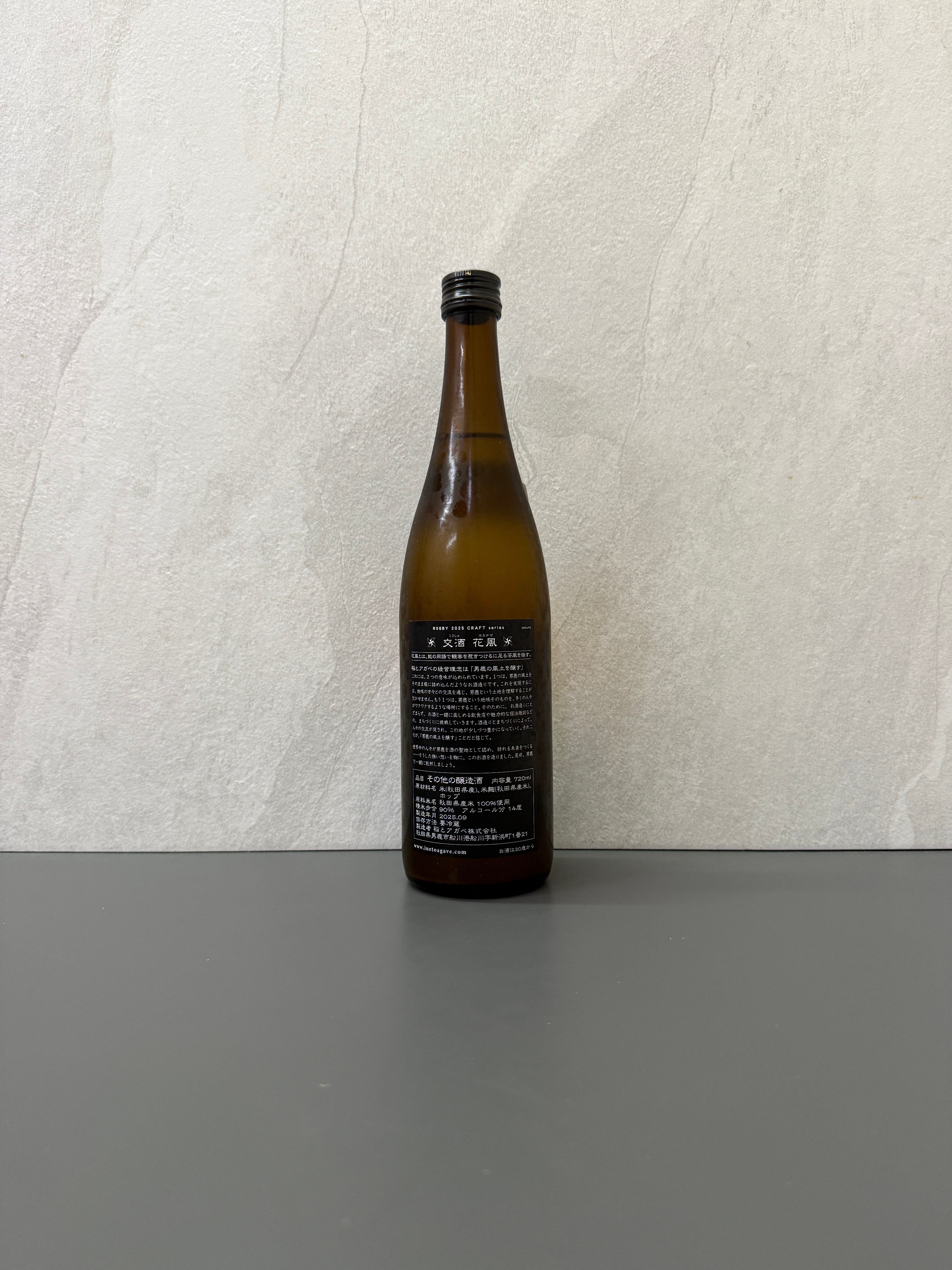 『根據香港法律,不得在業務過程中,向未成年人售賣或供應令人醺醉的酒類。』 Under the law of Hong Kong, intoxicating liquor must not be sold or supplied to a minor in the course of business. 啤酒花香和日本酒的甘味完美融合, 極具飲用舒適度的手工清酒。 這款酒的名字充滿詩意,「交酒 花風」中的「花」取自啤酒花的日文名「西洋唐花草」。以唐花草釀造的濁酒被稱為「花酛(はなもと)」,這個名稱源於秋田農村中世代相傳的製作方法。而「風」則象徵著男鹿地區強勁的風力,寓意著這片土地的自然力量與無窮魅力。「交酒 花風」不僅僅是一款酒,更是酒造對傳統與創新的致敬,期望它能為釀造行業帶來新的風潮,並將這份心意傳遞給更多的人。因此,這個系列被命名為「交酒」,象徵著日本酒與其他文化交匯時所孕育出的新生機與發展潛力。 藉由這款清酒,酒造希望能將清酒與濁酒之外的「手工清酒」命名為「交酒」,這將成為對日本酒的一種全新稱呼,為日本酒的文化注入新的活力和生命力。 打開酒栓,手工啤酒的香氣與日本酒的精髓完美融合,仿佛將兩者的最佳特質一同呈現。入口品味,如荔枝和葡萄般的豐富果香,令人沉醉於其細膩的層次感。「交酒」充滿了誘人的香氣,入口柔和易飲,展現出濁酒特有的米香甜味,並與啤酒花香氣相互調和,交織出一種更為進化的香氣體驗。這款酒無疑是一款新世代的傑作,為品味者帶來前所未有的感官享受。 「稲とアガベ」(稻與龍舌蘭,RICE AND AGAVE)是於2021年秋天在秋田縣男鹿市創業的CRAFT SAKE釀造所。 所謂「CRAFT SAKE」,是指以日本酒的製造技術為基礎而釀造的酒,又或者以加入其他原材料而做出新的口味,邁向成為新種類的酒。現在,於日本有遠見的酒造也紛紛以此種類的酒來開托新市場,並加以發展。「稲とアガベ」也就是其中之一。 酒造創辦人是福岡出身的岡住修兵,自2014年起在秋田縣的新政酒造工作而移居於此地,得到地區上各方面的支援,從而令人生豐盛起來。以秋田縣作為事業始創的地方,也是為了回饋此地。 「稲とアガベ」的經營理念是「釀造男鹿的風土」。此包含著兩個意思。其一就是釀造出代表男鹿半島風土的清酒。另一個意思,就是不限於造酒,而是持續創造出令許多人都覺得興奮的事業。 蔵元 稲とアガベ株式會社 蔵元所在地 秋田縣男鹿巿船川港船川新濱町1-21 酒精含量 14% 内容量 720ml 原料米 秋田縣產米,啤酒花 精米歩合 90% 日本酒度 不適用 酸度 不適用 酵母 不適用 製造年月 2025年9月 (飛機空運到港)